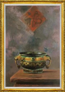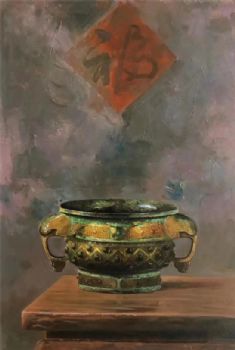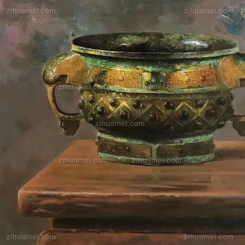 三足鼎青铜器花卉现代与经典静物写实油画 手绘