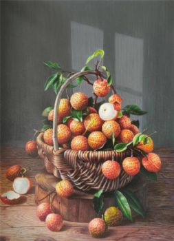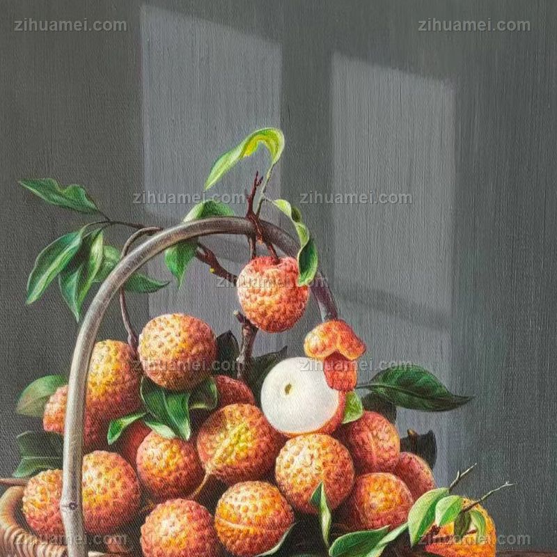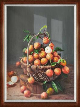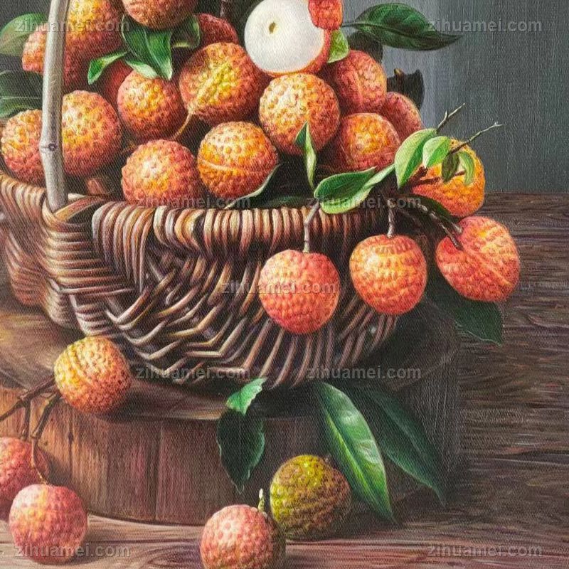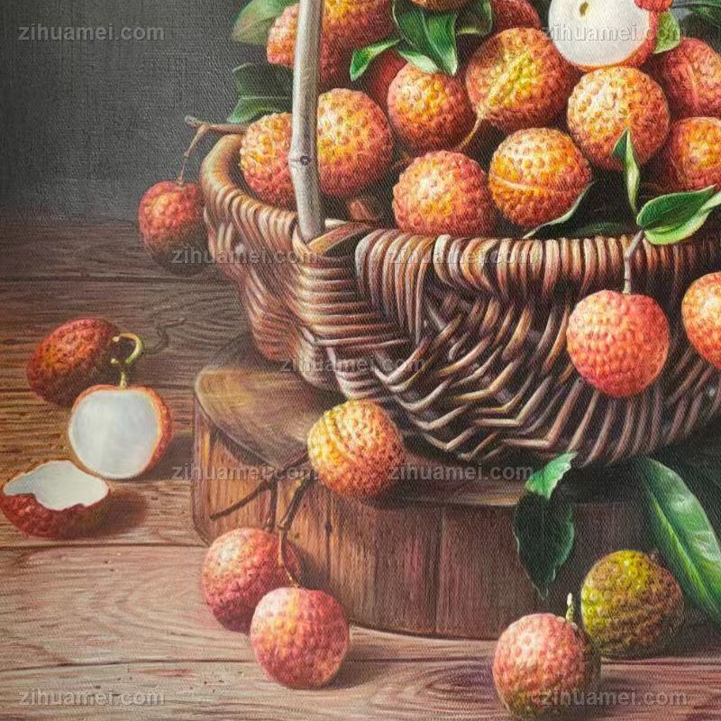 • 超写实新中式纯手绘水果静物油画一筐荔枝油画作品