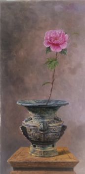 三足鼎青铜器花卉现代与经典静物写实油画 手绘