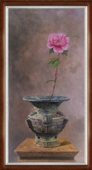 • 精品新中式青铜器里的花朵摆件静物超写实油画实木画框