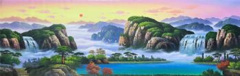 • 青山绿水山水风景纯手绘油画作品