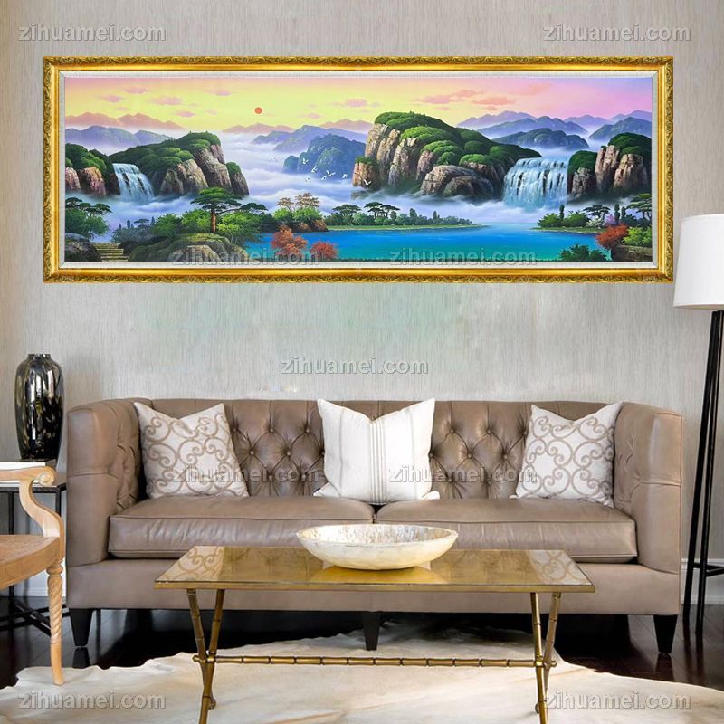 金山聚宝盆山水风景油画纯手绘大厅山水风景油画 手绘