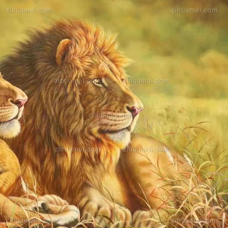 • 适合客厅书房办公室的精品写实动物油画狮子图