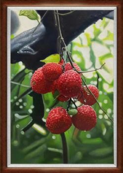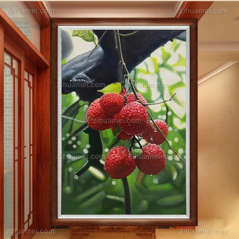 • 新中式超写实荔枝水果静物写实油画实木画框