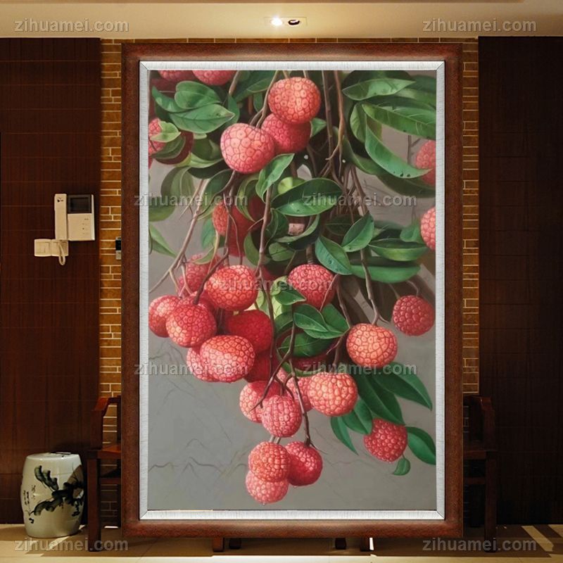 • 原创新中式励志向上超写实荔枝水果静物写实油画实木画框