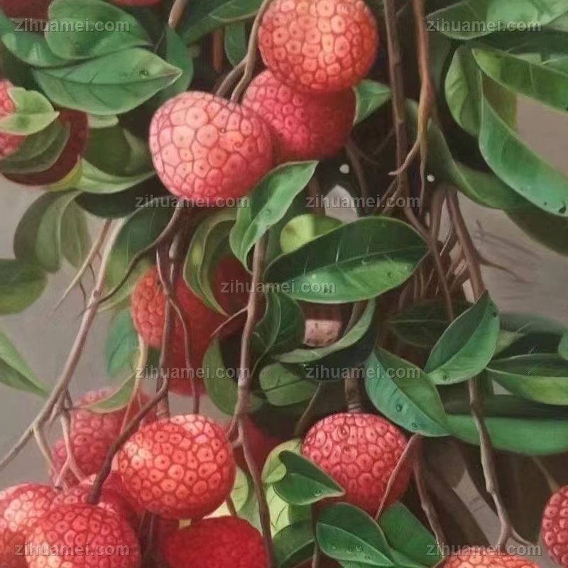 • 适合办公室书房的水果静物写实油画作品荔枝图