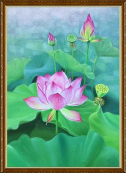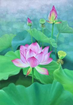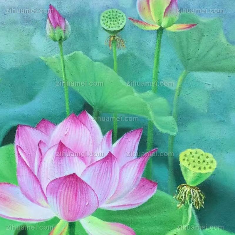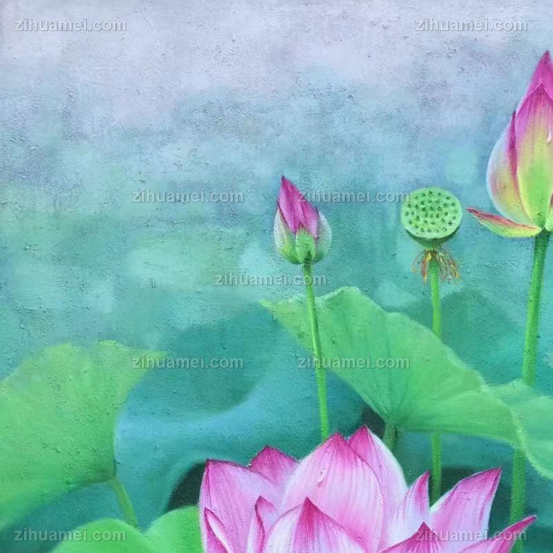 • 高品质写实工笔手绘荷花油画