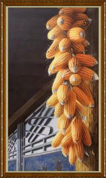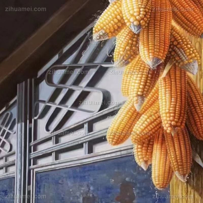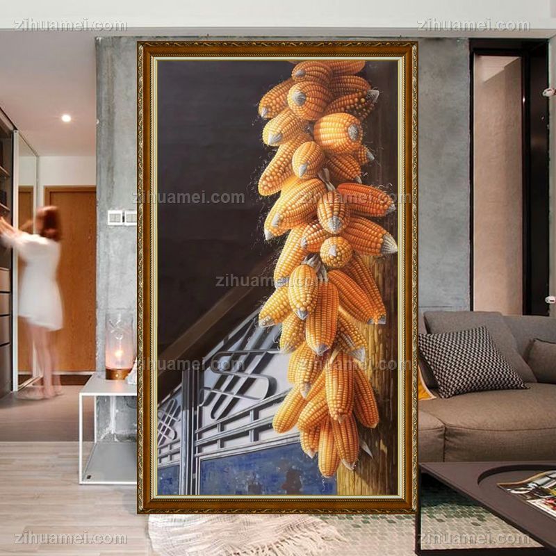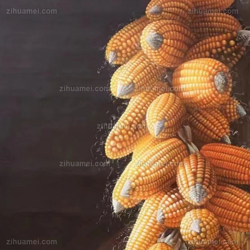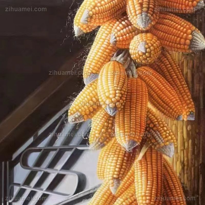 • 适合挂在玄关的静物写实油画玉米图