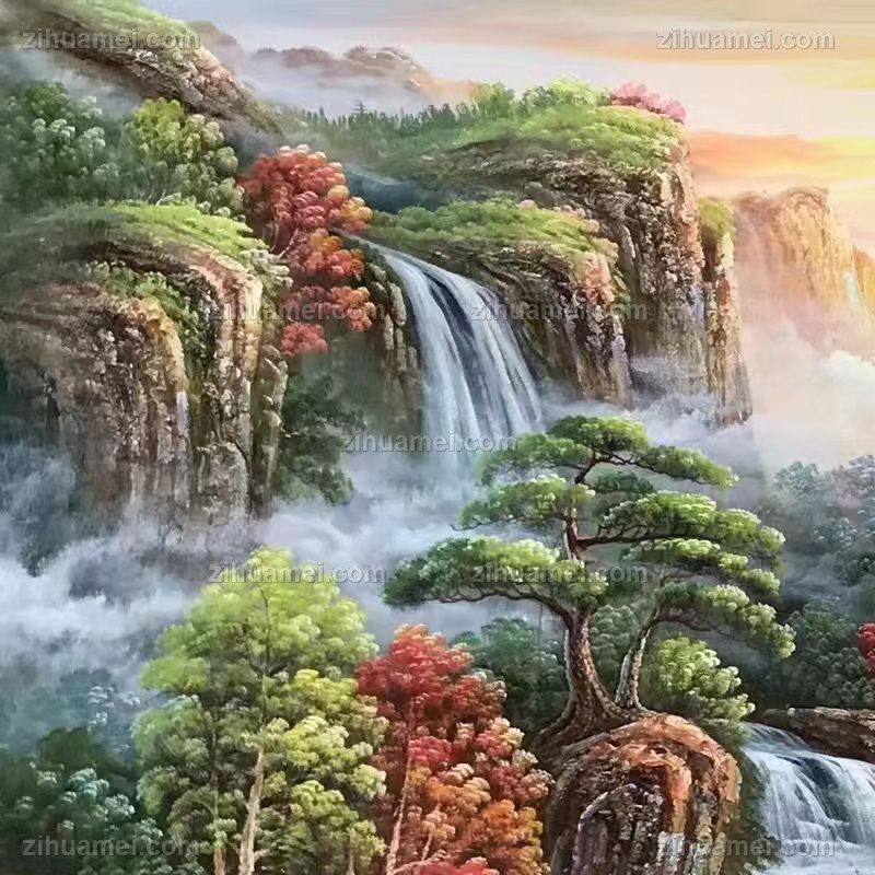金山聚宝盆山水风景油画纯手绘大厅山水风景油画 手绘