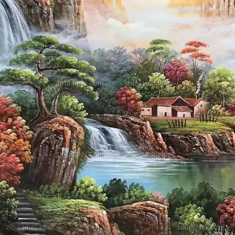 纯手绘风景油画山水画聚宝盆风景油画实木画框 手绘