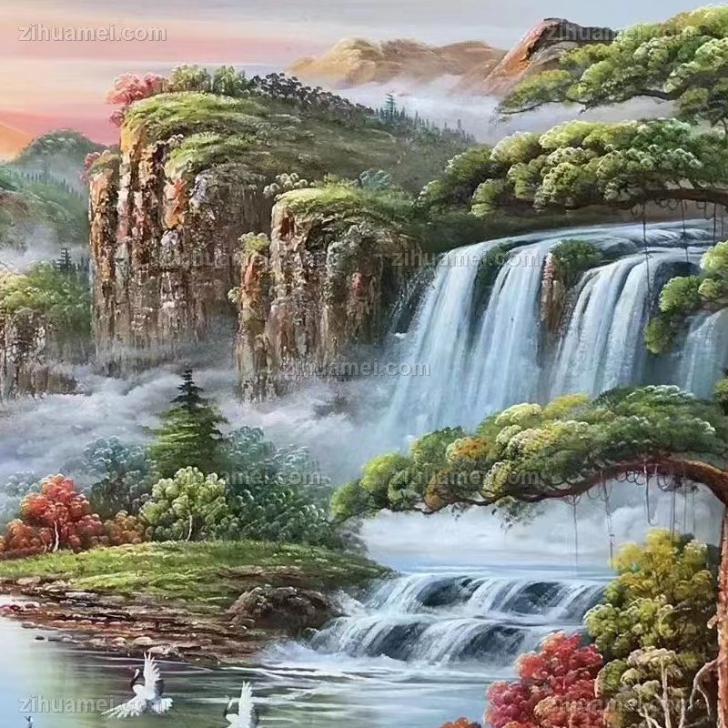 • 适合酒店大厅背景墙大幅新中式风景油画