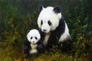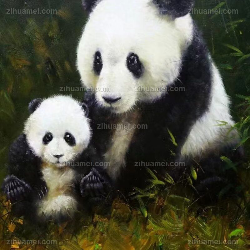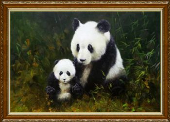 • 画面温馨亲情动物油画熊猫油画
