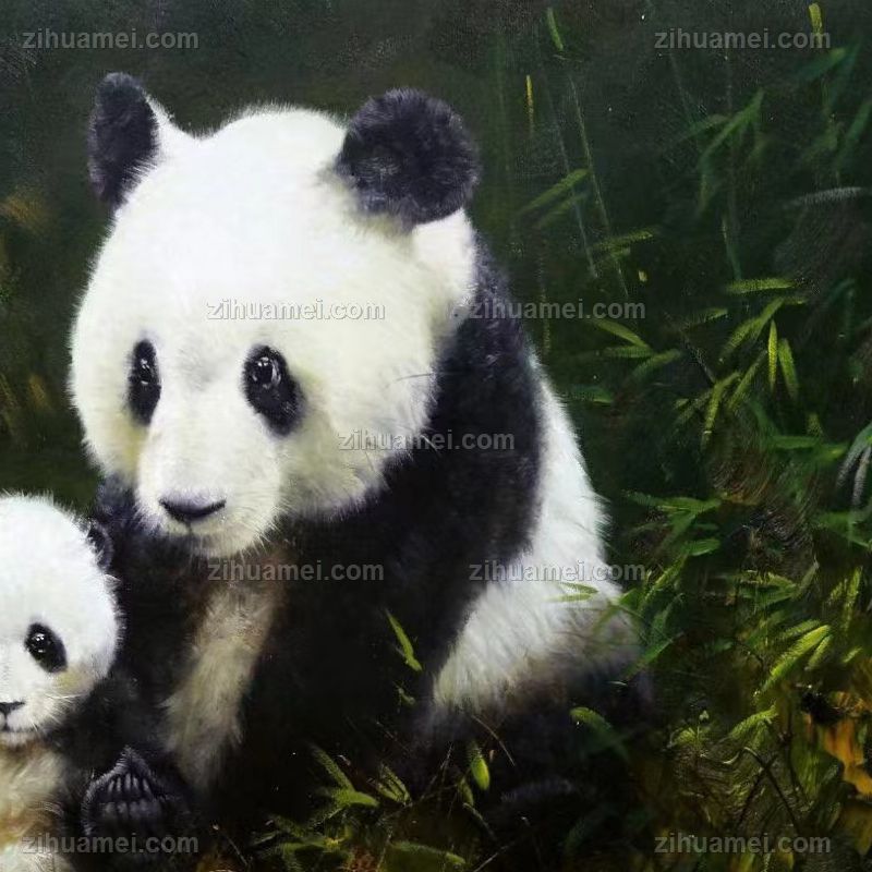 动物油画熊猫父子图精品写实油画