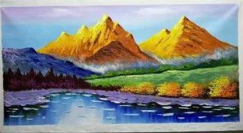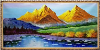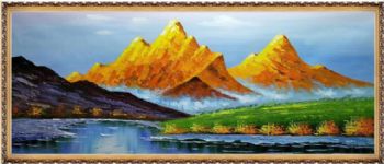 • 纯手绘油画油画批发厚肌理笔触油画金山聚宝盆油画新中式山水油画实木框