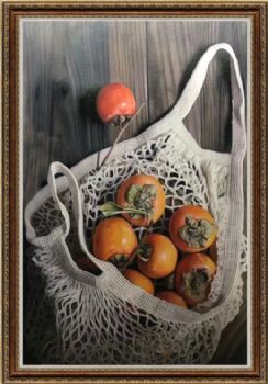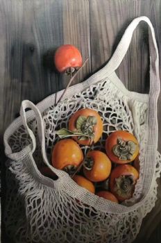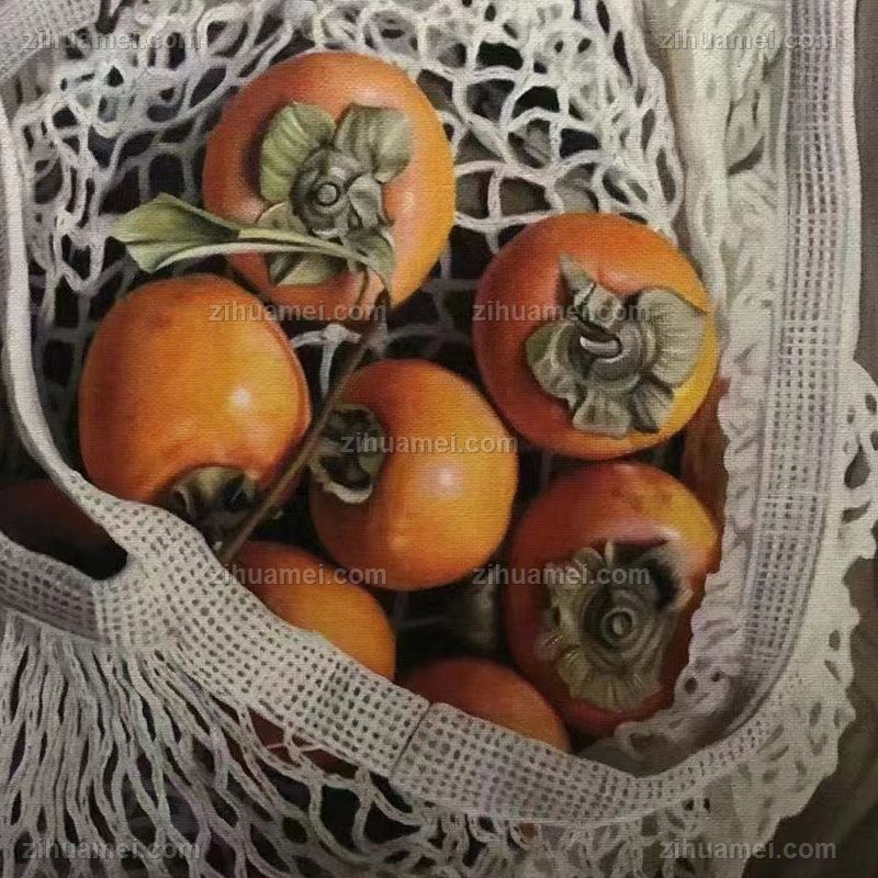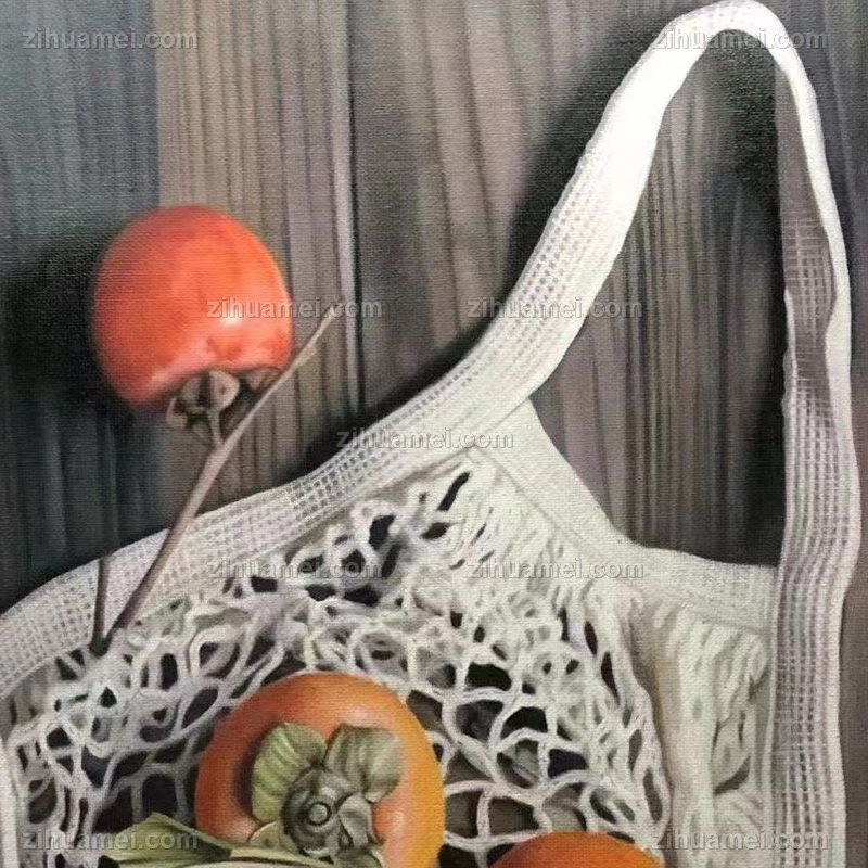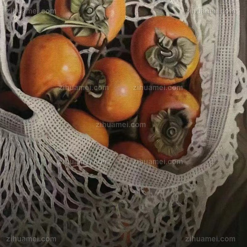 • 一袋好事柿子图超写实精品静物水果油画新中式纯手绘油画