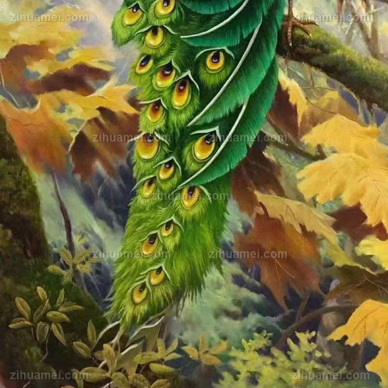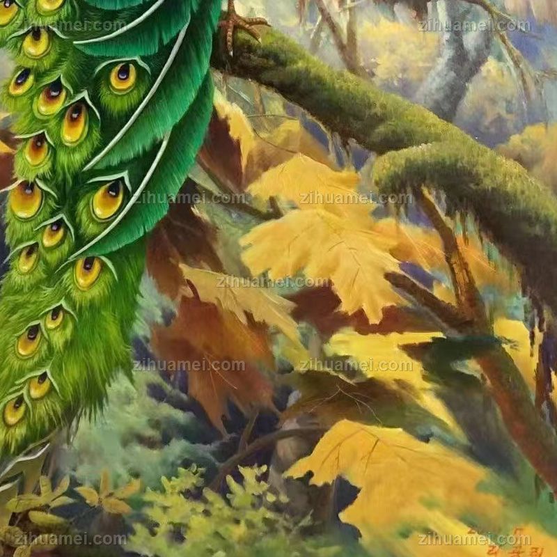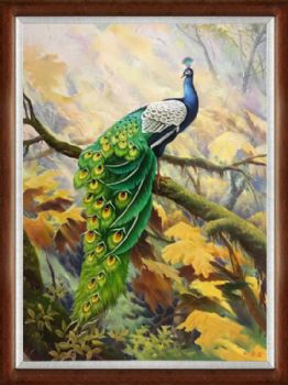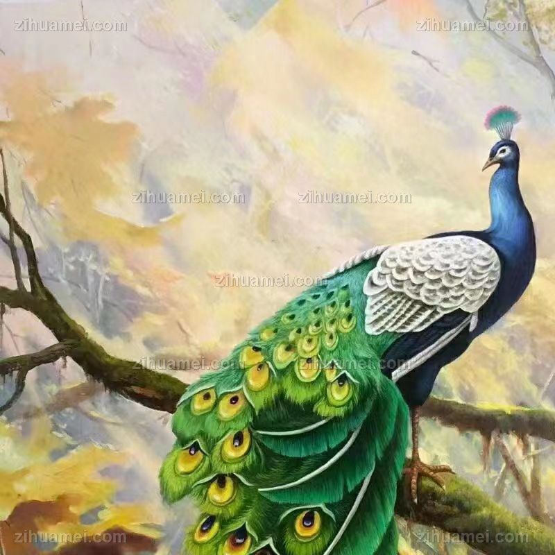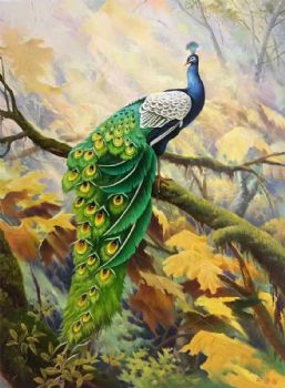 • 纯手绘动物油画孔雀图