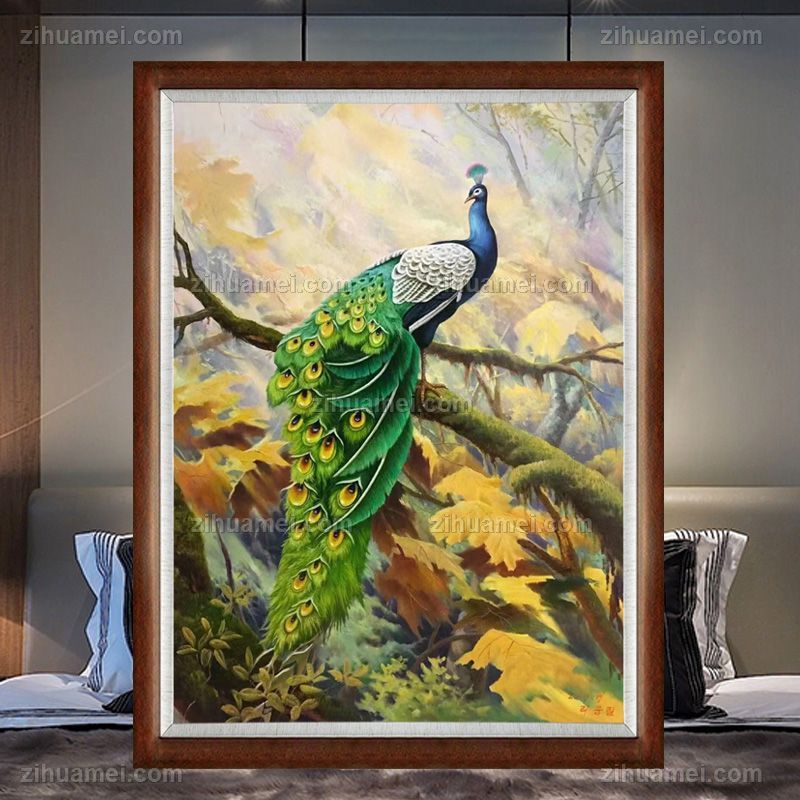 • 实力画家精品动物油画孔雀图孔雀上墙幸福吉祥实木画框