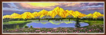 日照金山手绘风景油画客厅玄关装饰画实木外框 手绘