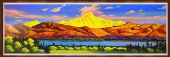 • 纯手绘大幅山水聚宝盆风景油画金山系列实木画框