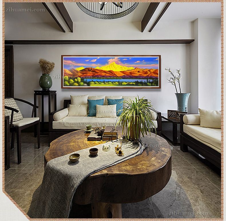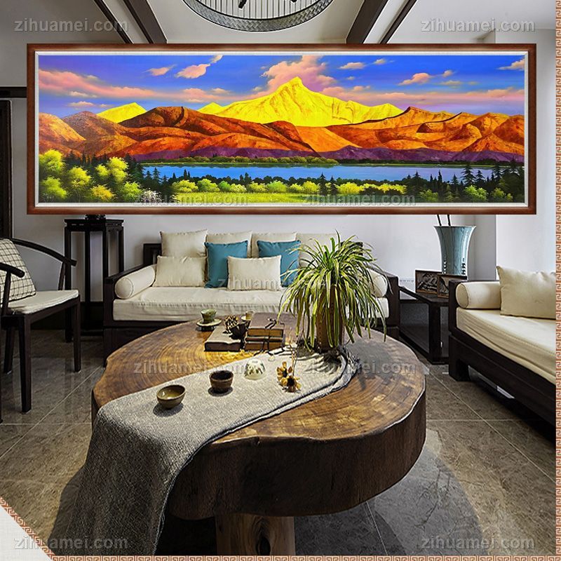 日照金山手绘风景油画客厅玄关装饰画实木外框 手绘