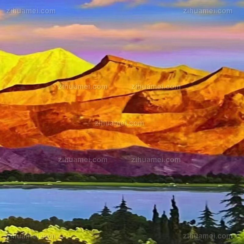 金山系列风景油画纯手绘油画装饰画实木外框 手绘