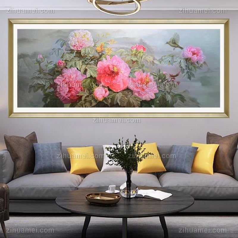 精品牡丹油画新中式纯手绘花卉油画实木画框 手绘