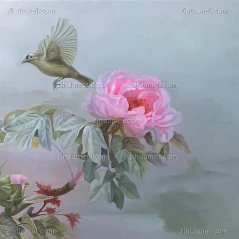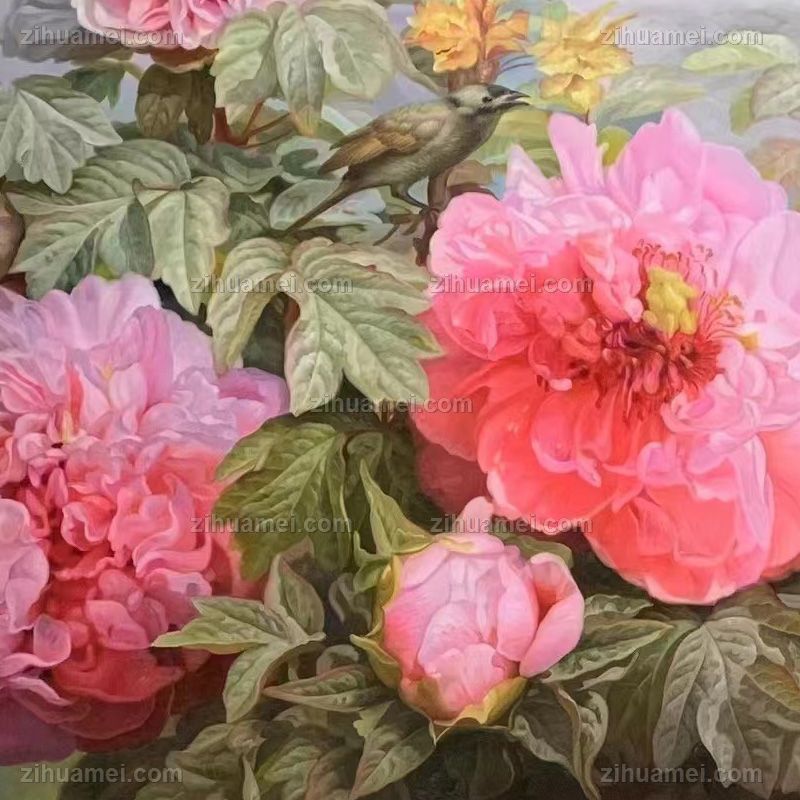 • 精品纯手绘写实油画花开富贵喜上枝头牡丹图