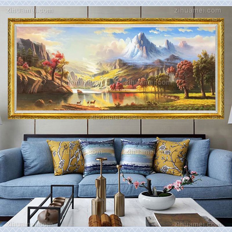欧式风景油画山水风景画纯手绘油画实木画框 手绘