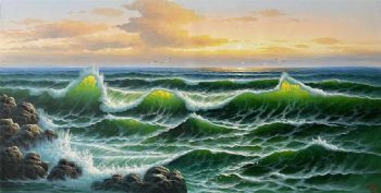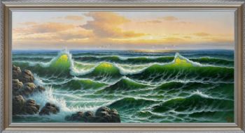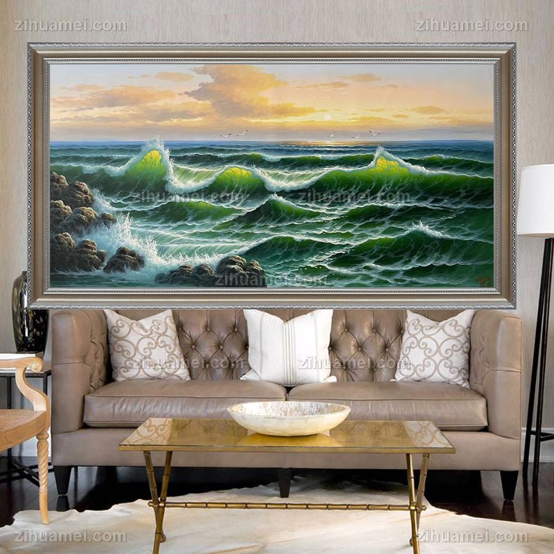 • 大幅大厅油画作品高品质海浪手绘油画作品实木画框