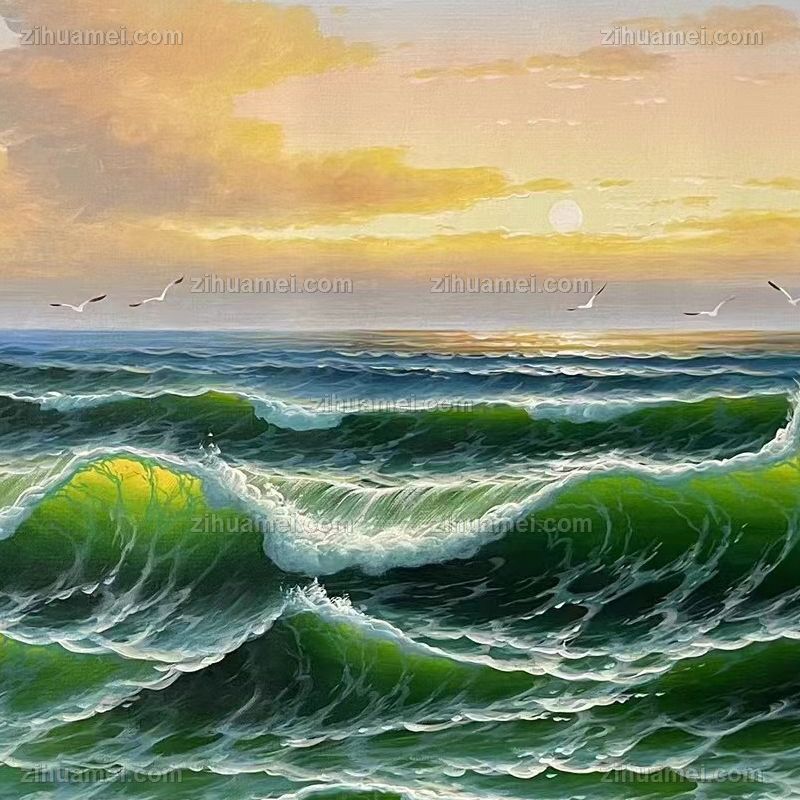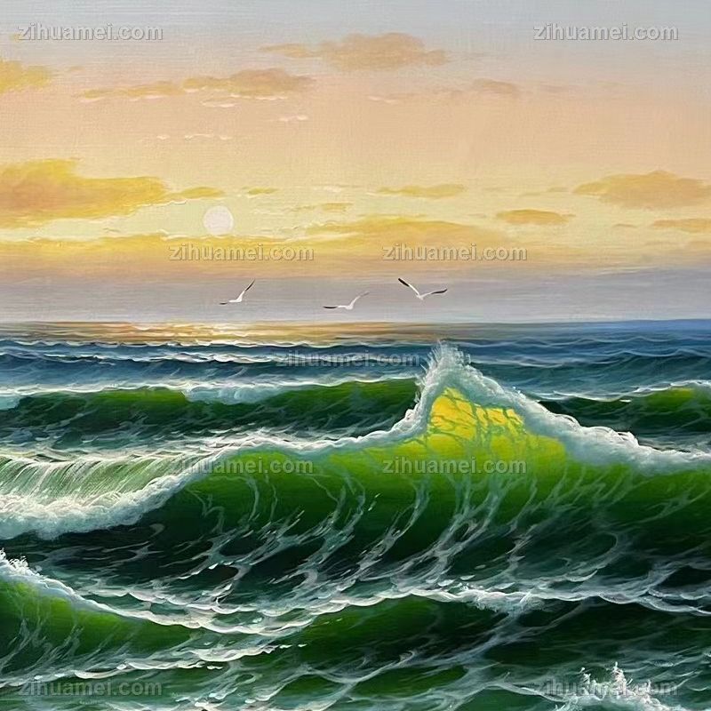 纯手绘海浪风景油画适合办公室茶室的风景油画 手绘