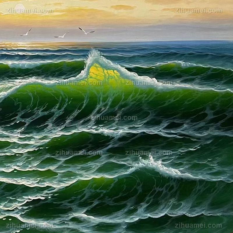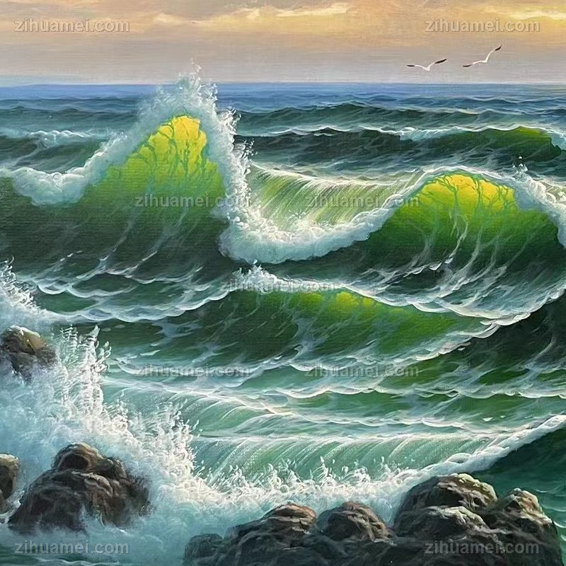 惊涛骇浪风景油画纯手绘海浪风景油画 手绘
