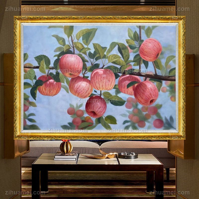 水果静物写实油画纯手绘油画苹果图实木画框 手绘