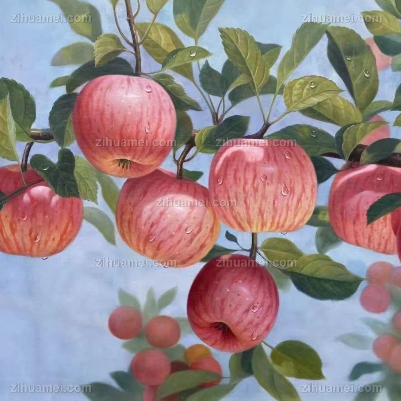 • 精品写实新中式水果静物油画手绘苹果油画平平安安