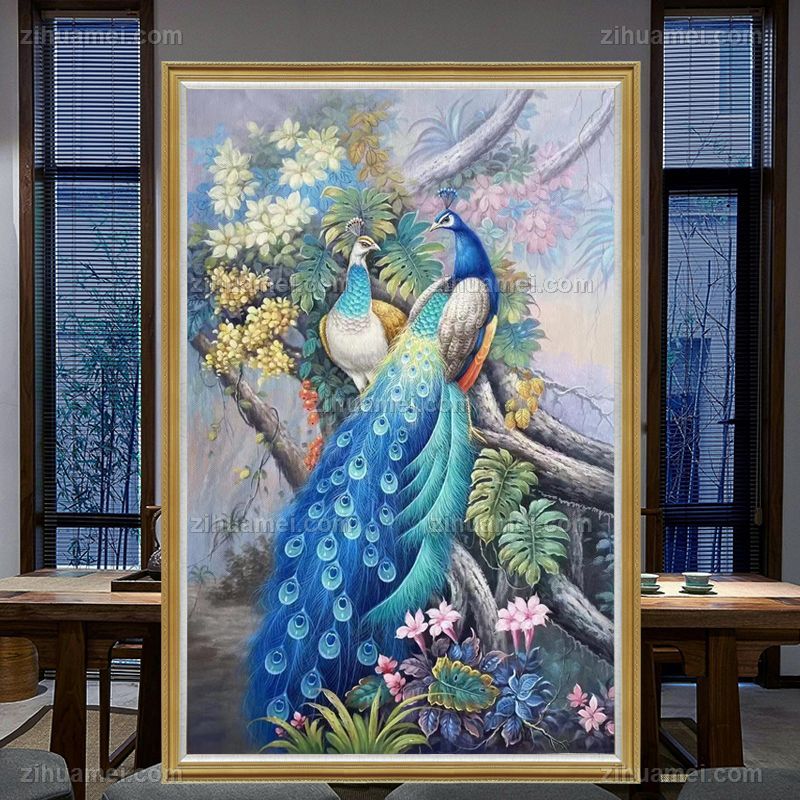 • 精品写实孔雀油画纯手绘动物油画适合客厅的动物油画