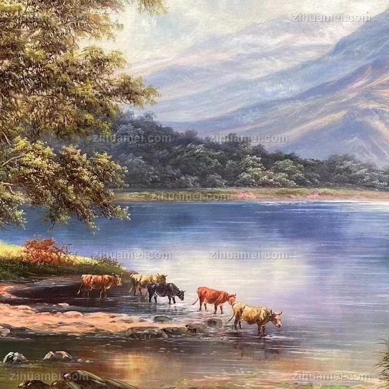 • 欧式古典风景油画纯手绘山水风景油画欧式客厅画实木画框