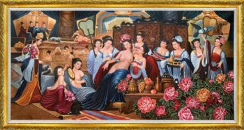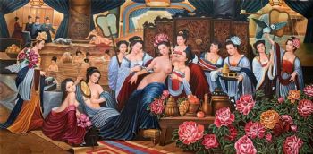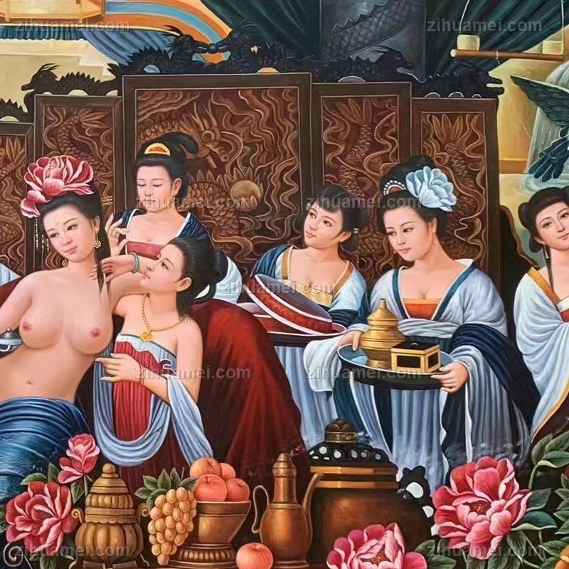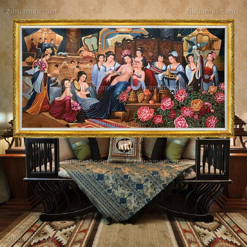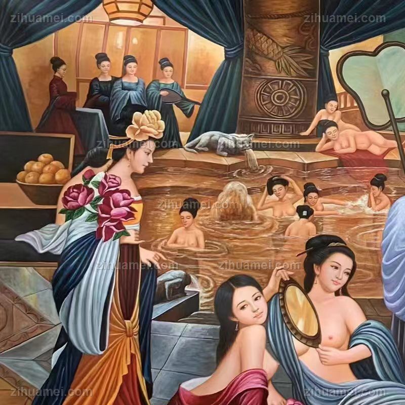 • 高品质人物写实油画贵妃出浴图新中式人物油画实木画框
