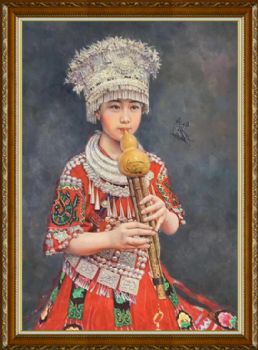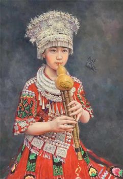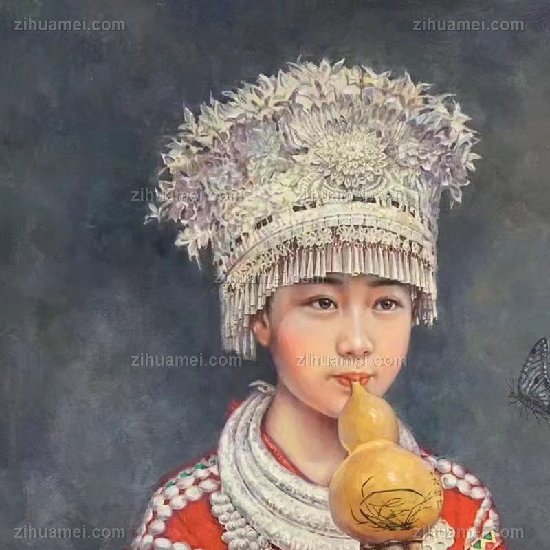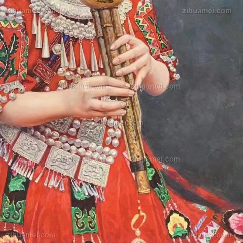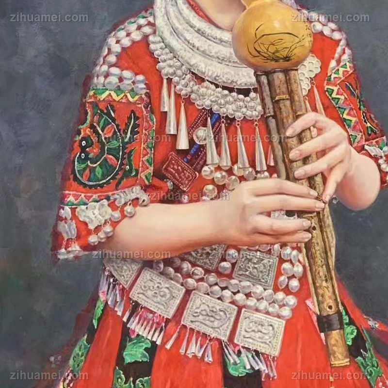 • 新中式人物油画写实人物油画少数民族服饰写实油画
