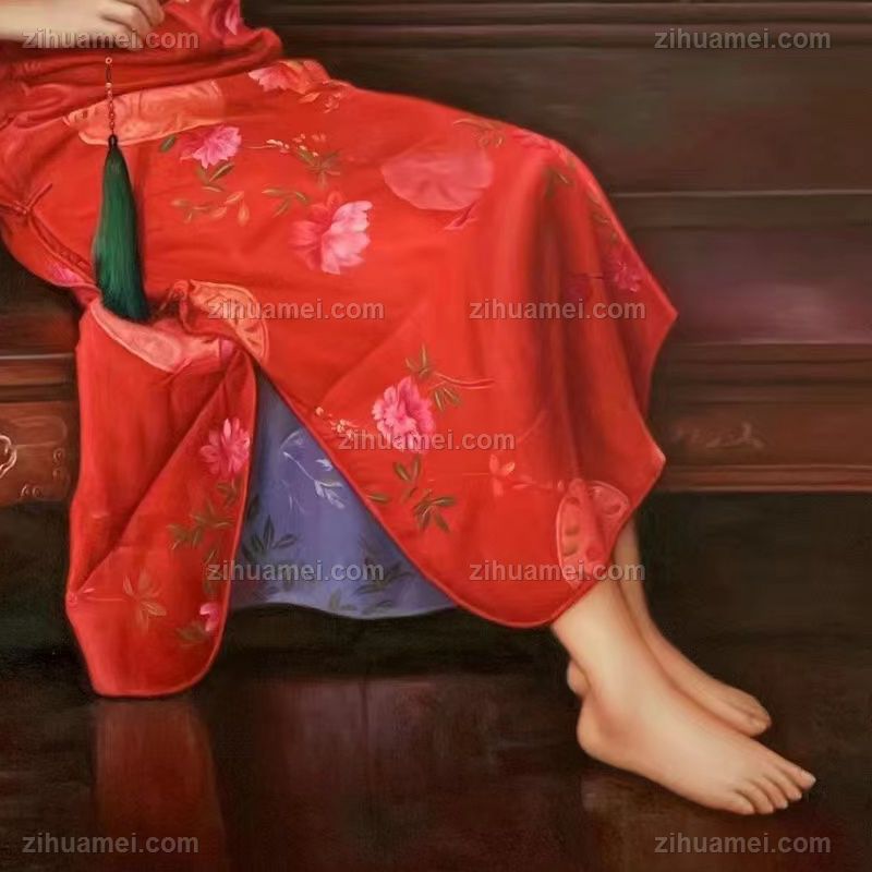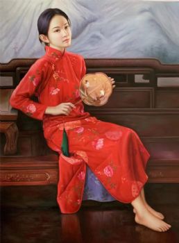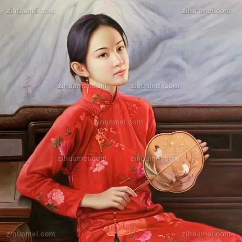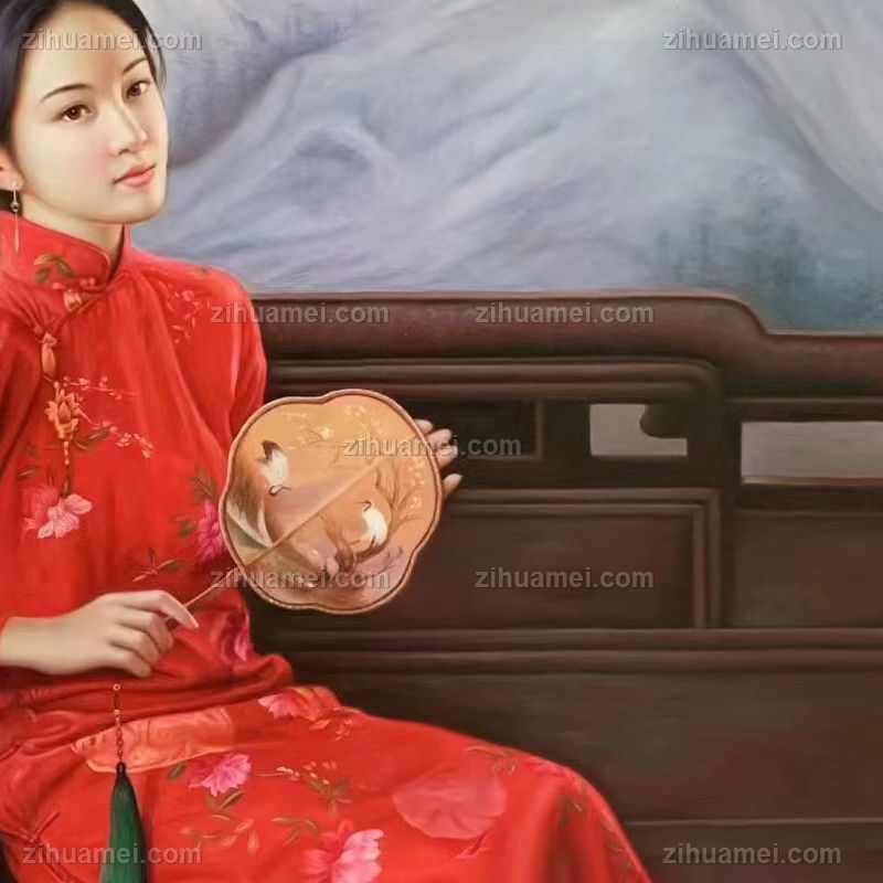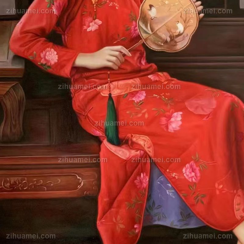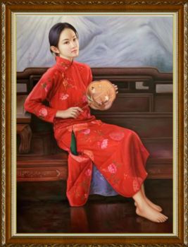 • 精品纯手绘写实美女油画人物油画女儿红新中式人物油画