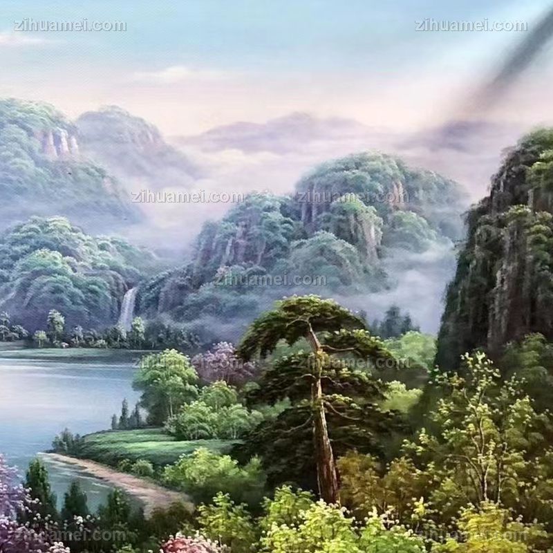 • 山水风景油画新中式客厅大厅酒店挂画纯手绘油画