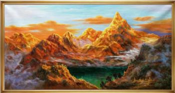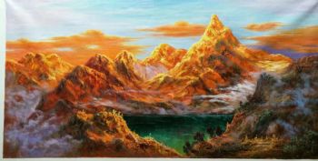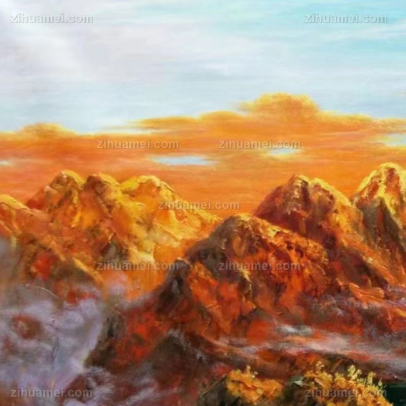 日照金山手绘风景油画客厅玄关装饰画实木外框 手绘