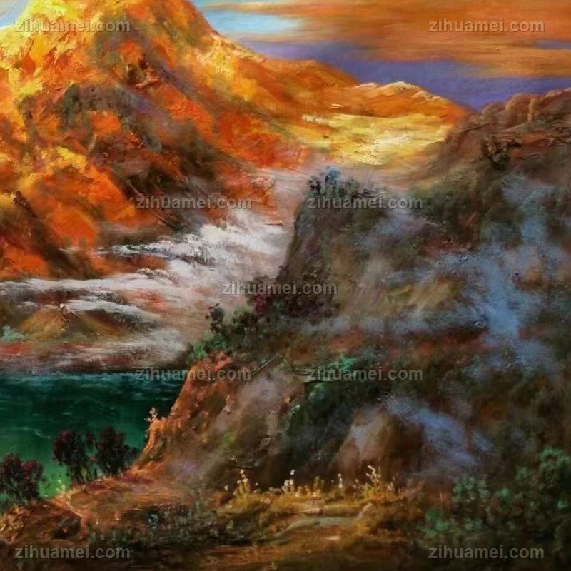 纯手绘风景油画山水画聚宝盆风景油画实木画框 手绘