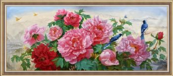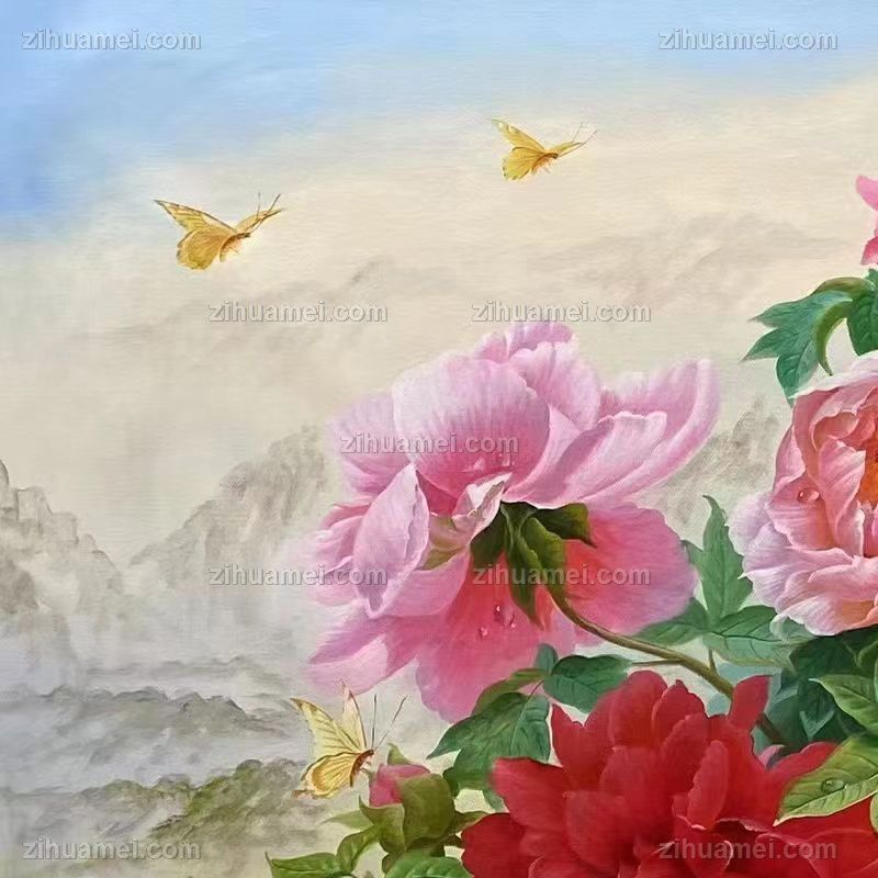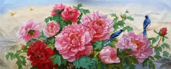 • 新中式客厅大厅花卉油画牡丹油画