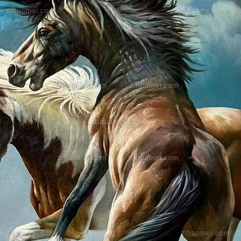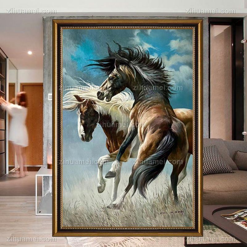 • 适合办公室精品动物油画骏马图双马油画