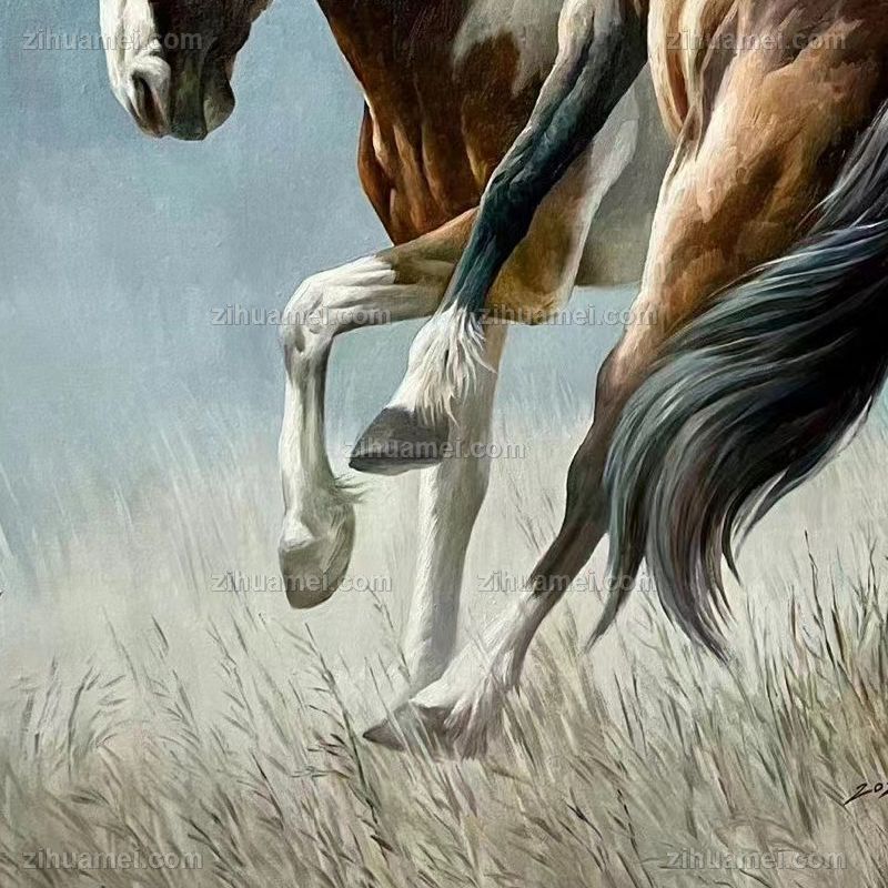 精品花卉白马图纯手绘写实动物油画实木画框 手绘