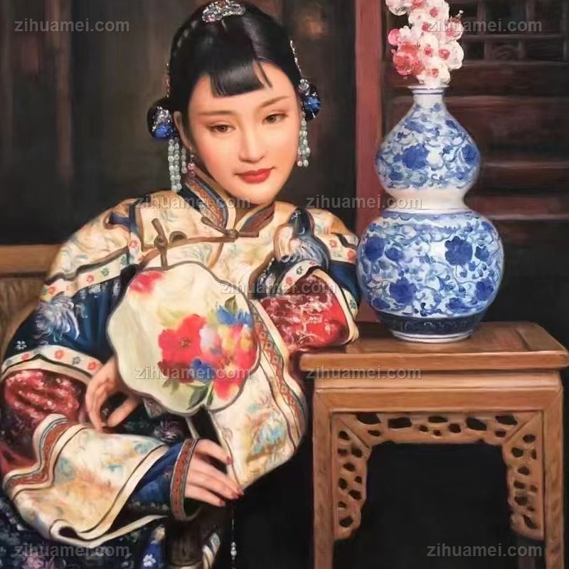 • 中式人物油画纯手绘美女人物油画古典风服饰油画