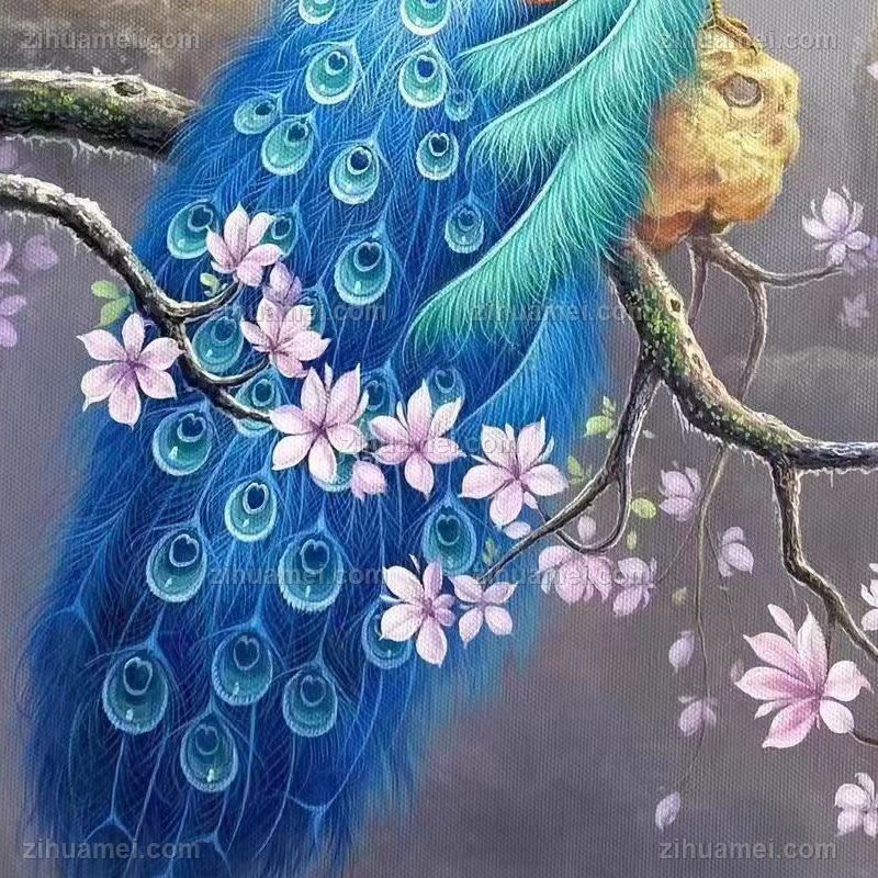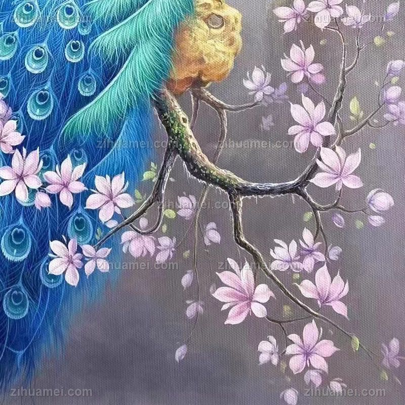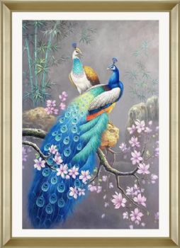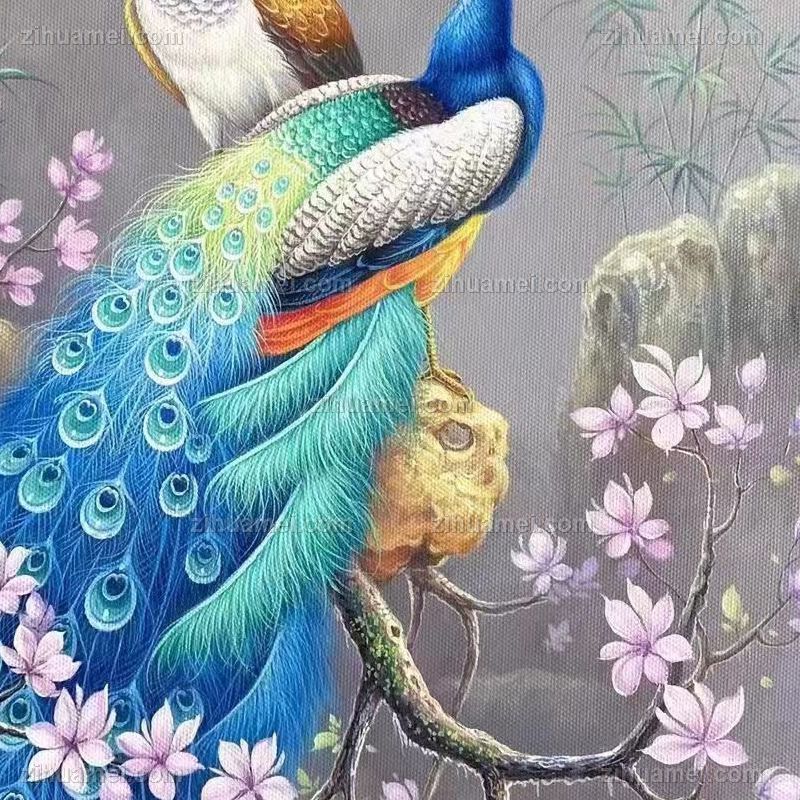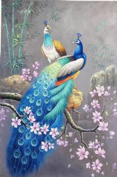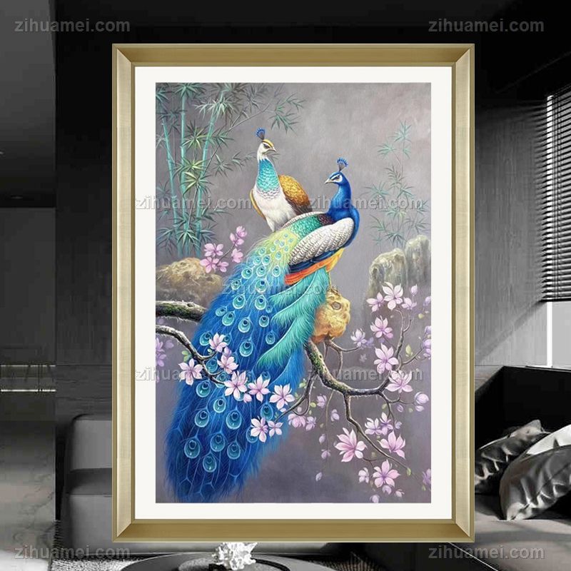 • 适合客厅的高品质孔雀图油画