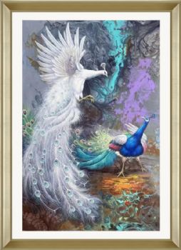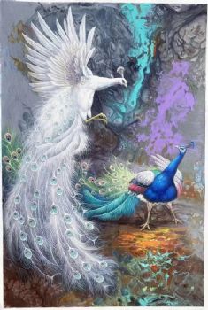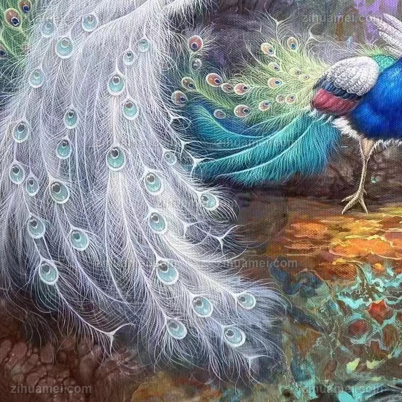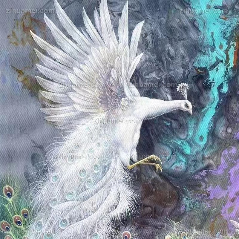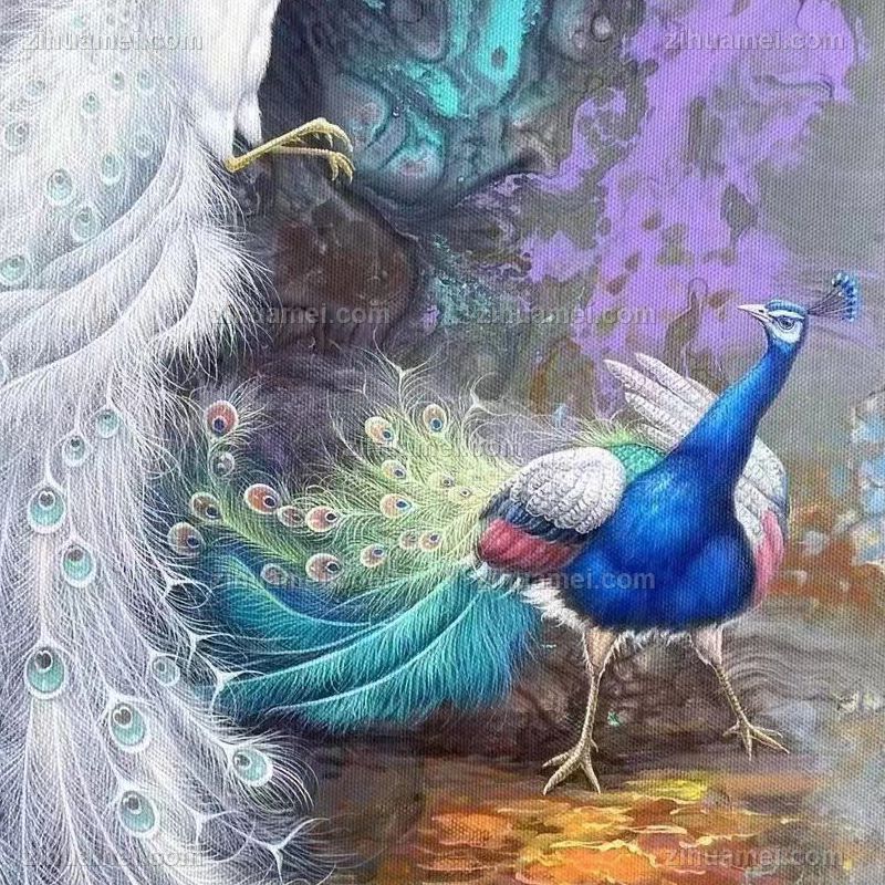 • 游龙戏凤高品质手绘动物油画吉祥孔雀油画客厅挂画