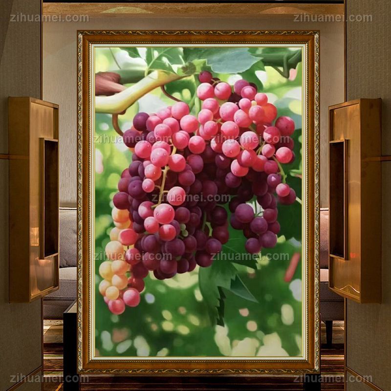 • 适合新中式卧室餐厅油画葡萄画
