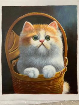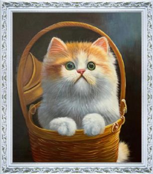 • 可爱的小猫咪动物油画纯手绘写实油画实木画框