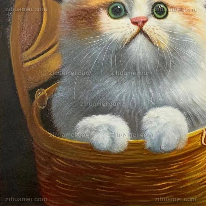 手绘宠物油画儿童卧室油画猫咪动物油画 手绘
